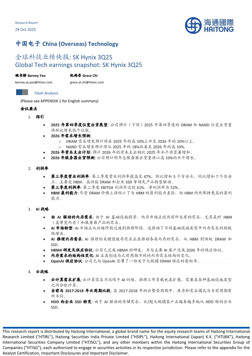 电子行业:海通国际-中国电子行业全球科技业绩快报: SK Hynix 3Q255-251029
