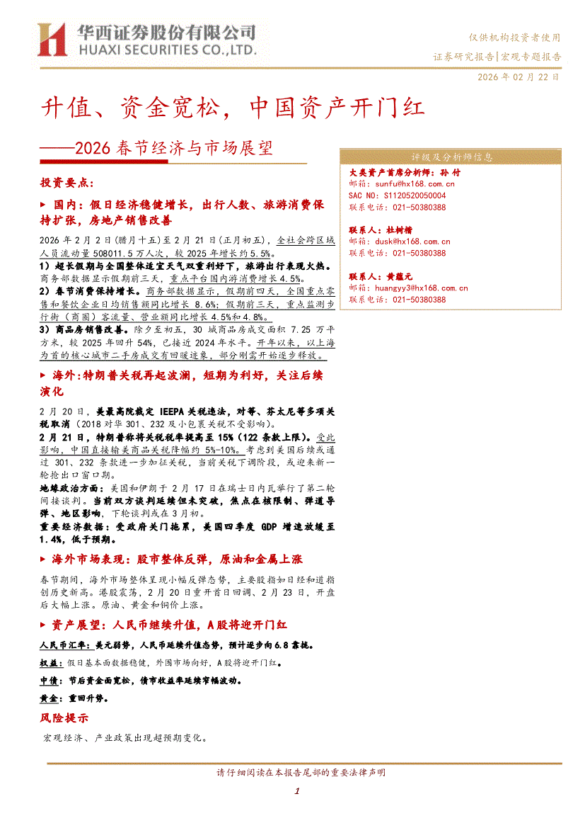 华西证券-2026春节经济与市场展望:升值、资金宽松,中国资产开门红-260222