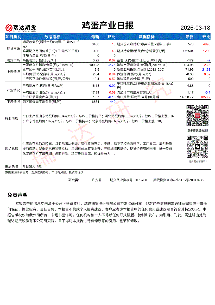 瑞达期货-鸡蛋产业日报-260318