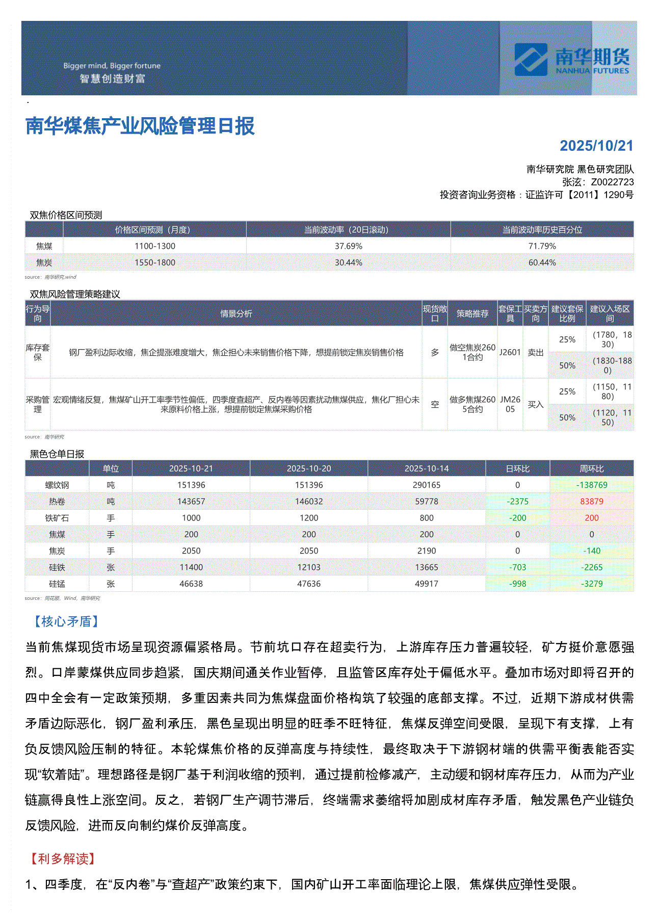 南华期货-煤焦产业周报:煤焦整体走势偏强,但仍需警惕负反馈风险-251017