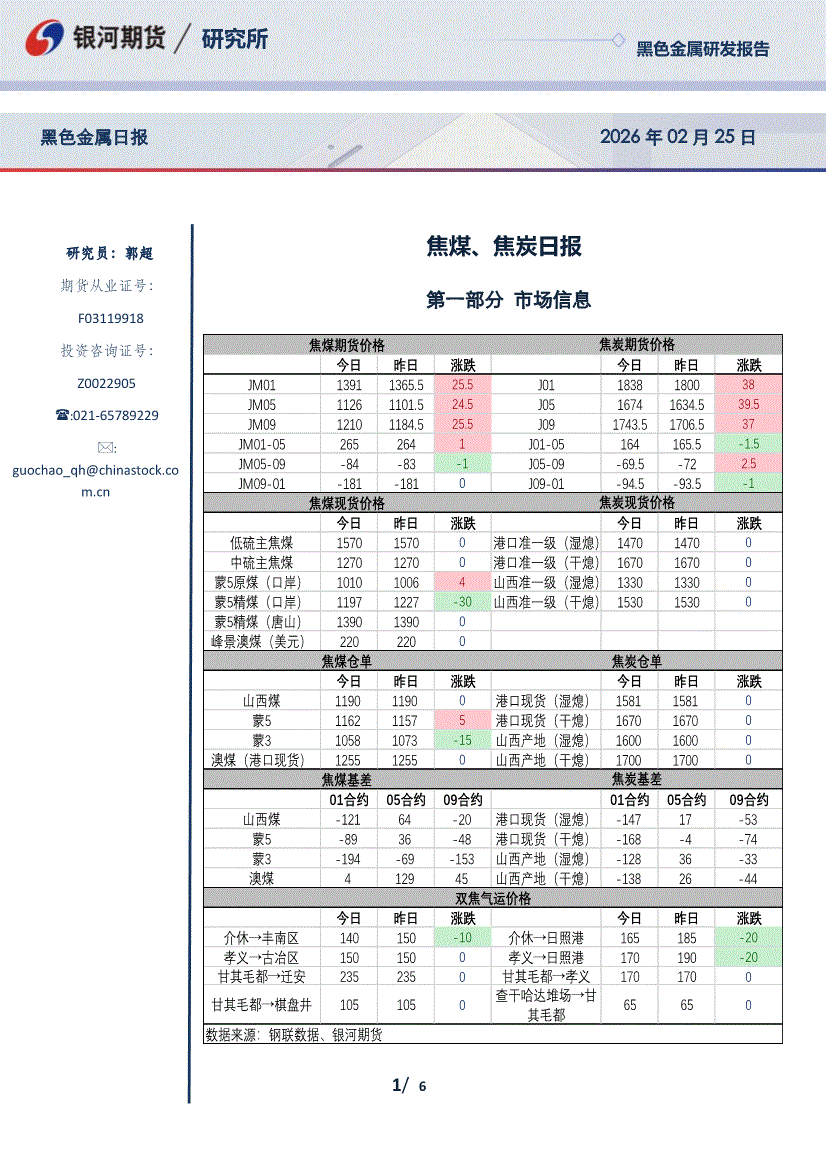 银河期货-焦煤、焦炭日报-260225