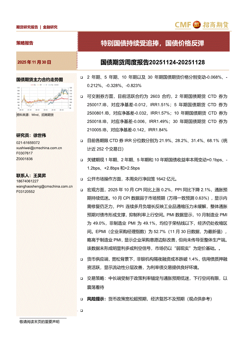 招商期货-国债期货周度报告:特别国债持续受追捧,国债价格反弹-251130