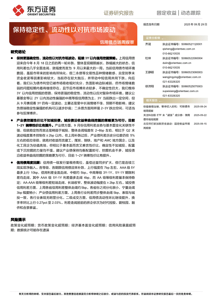 东方证券-信用债市场周观察:保持稳定性、流动性以对抗市场波动-250929