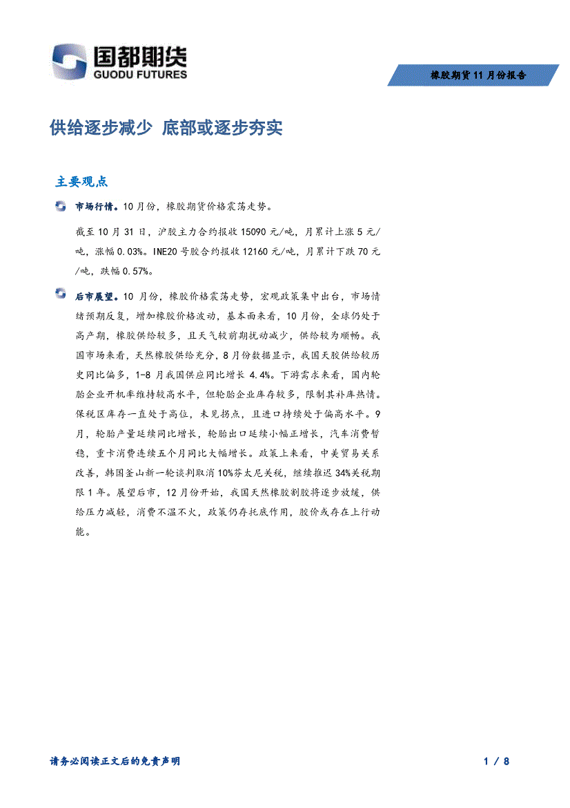国都期货-橡胶期货11月份报告:供给逐步减少,底部或逐步夯实-251106