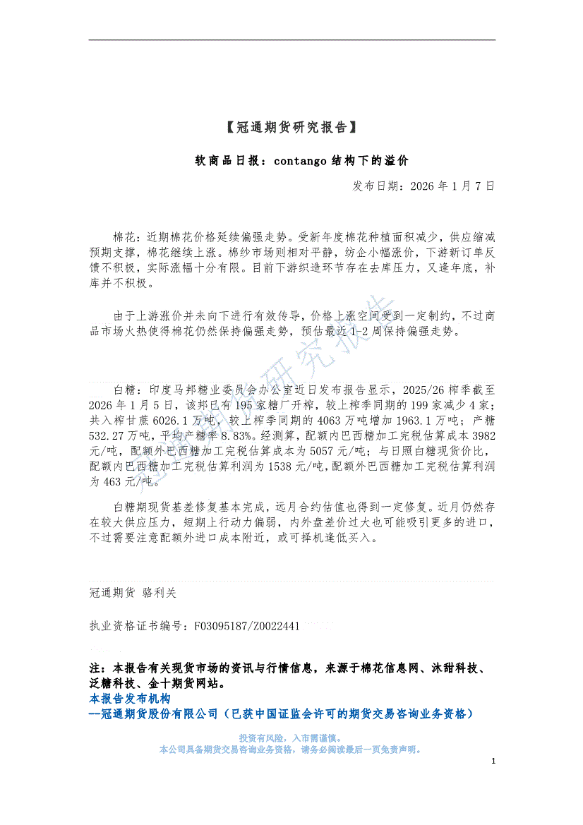 冠通期货-软商品日报:contango结构下的溢价-260107