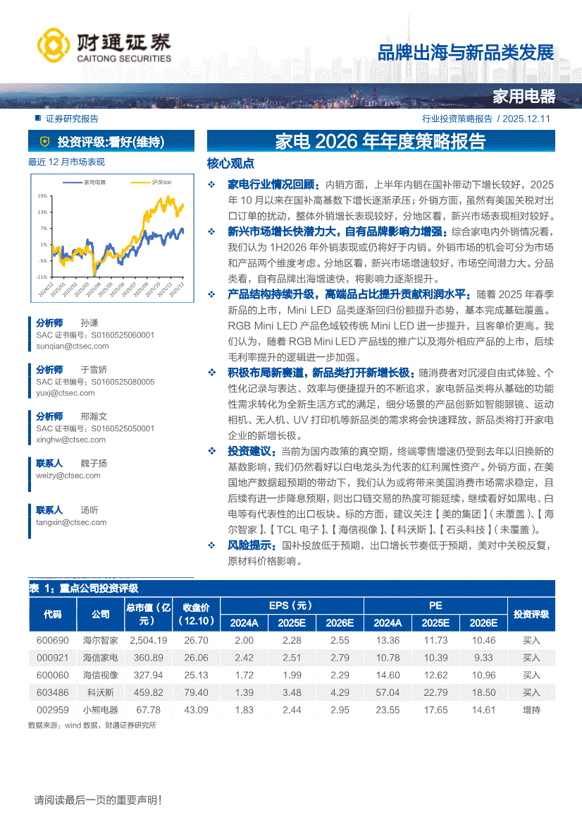财通证券-家电行业2026年年度策略报告:品牌出海与新品类发展-251212