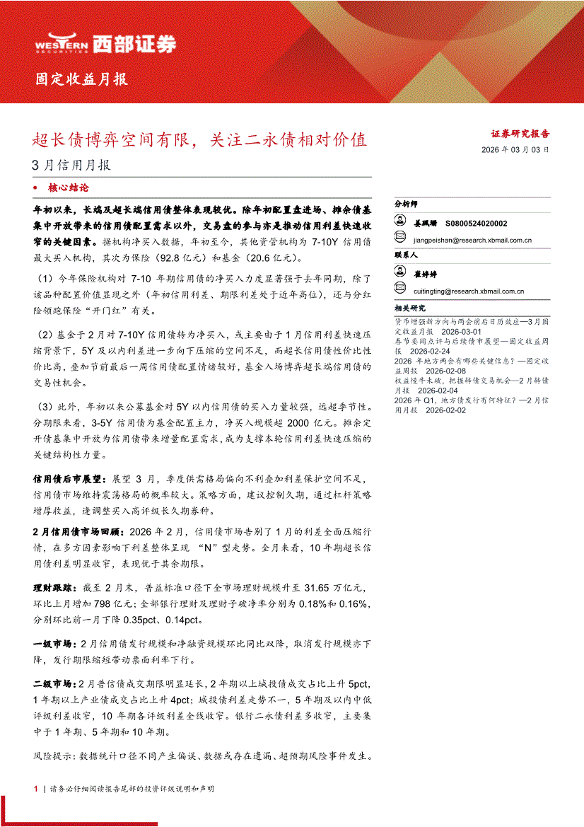 西部证券-3月信用月报:超长债博弈空间有限,关注二永债相对价值-260303
