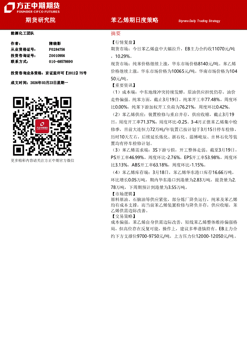 方正中期期货-苯乙烯期日度策略-260323