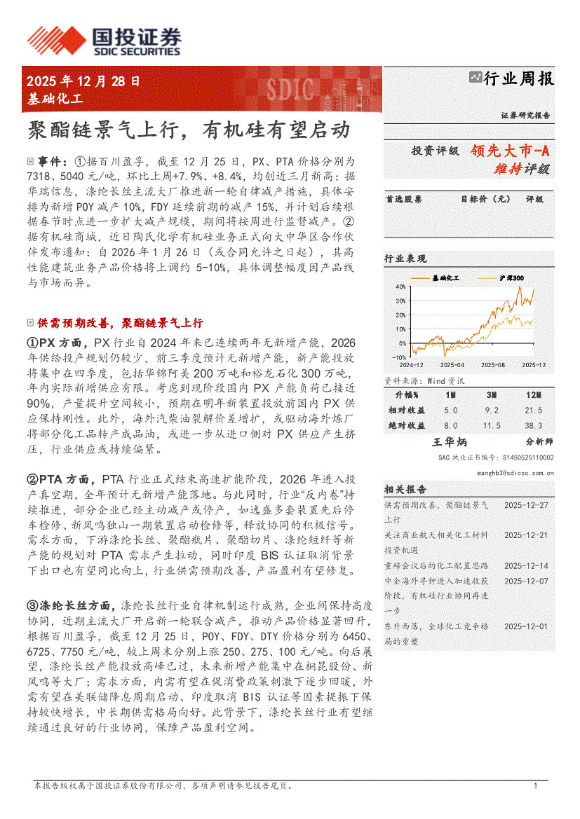 基础化工行业:国投证券-基础化工行业周报:聚酯链景气上行,有机硅有望启动-251228