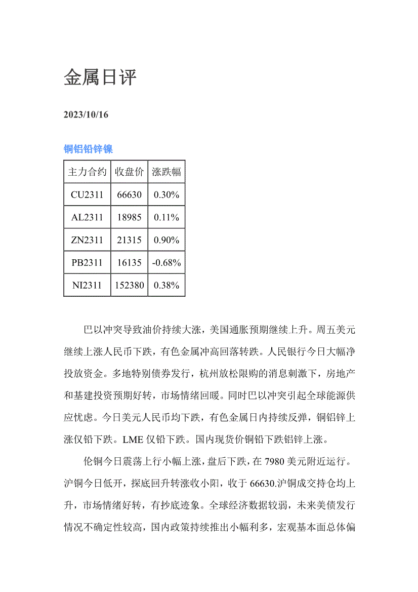 弘业期货-金属日评-231016