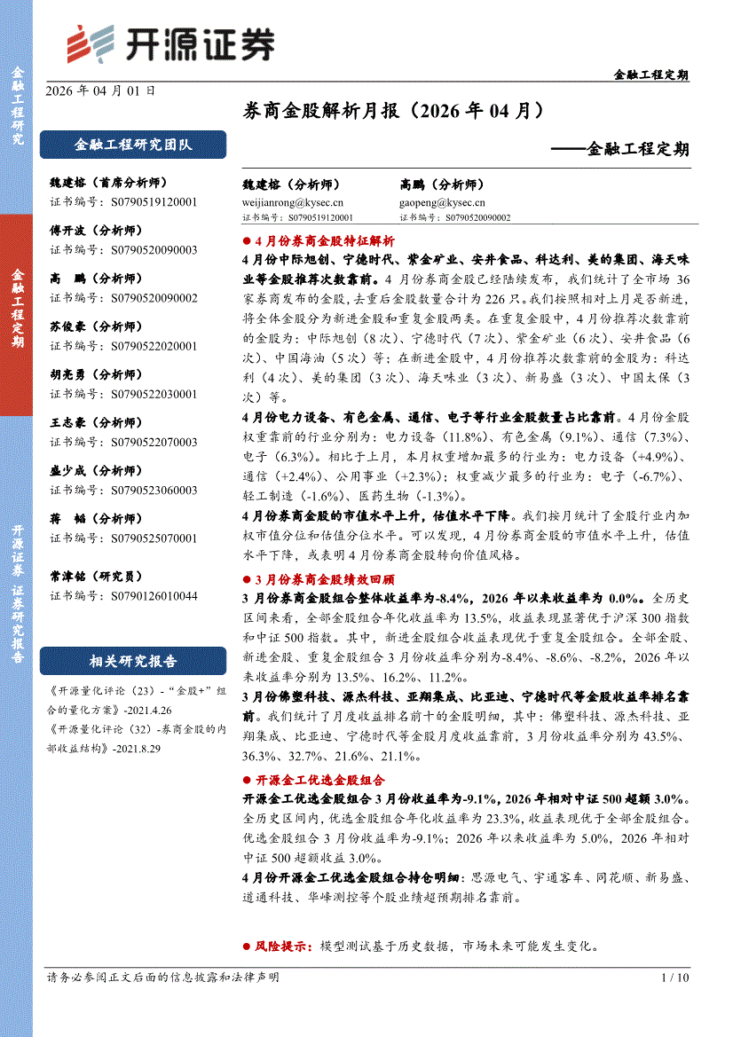 开源证券-金融工程定期:券商金股解析月报(2026年04月)-260401