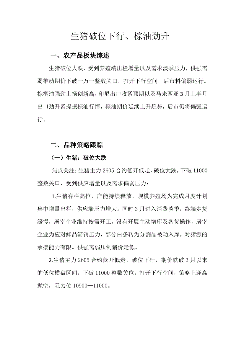 天富期货-生猪破位下行、棕油劲升-260316