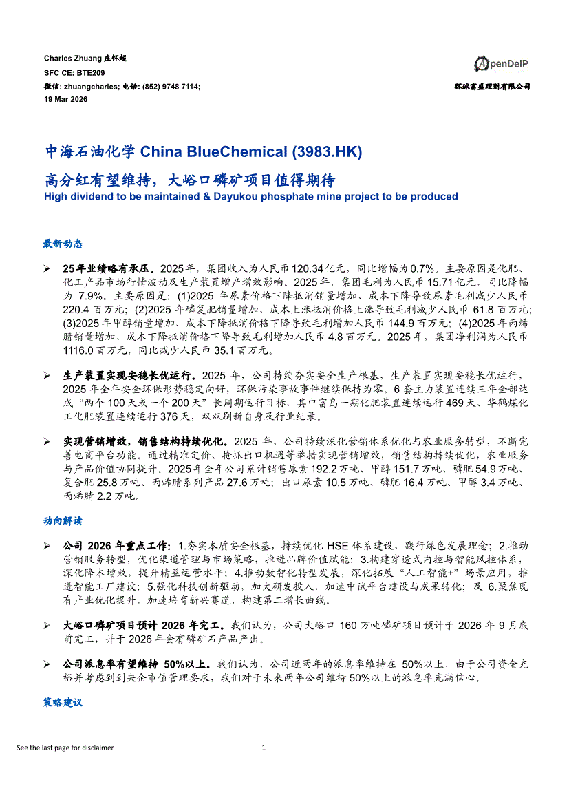 中海石油化学:环球富盛-中海石油化学-3983.HK-高分红有望维持,大峪口磷矿项目值得期待-260319