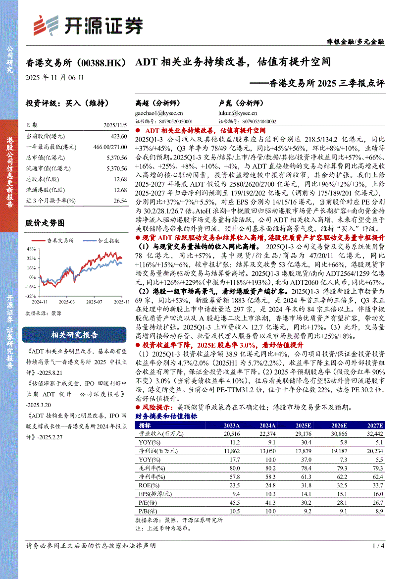 香港交易所:开源证券-香港交易所-0388.HK-2025三季报点评:ADT相关业务持续改善,估值有提升空间-251106