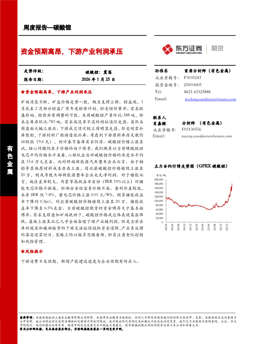 东证期货-碳酸锂周度报告:资金预期高昂,下游产业利润承压-260125