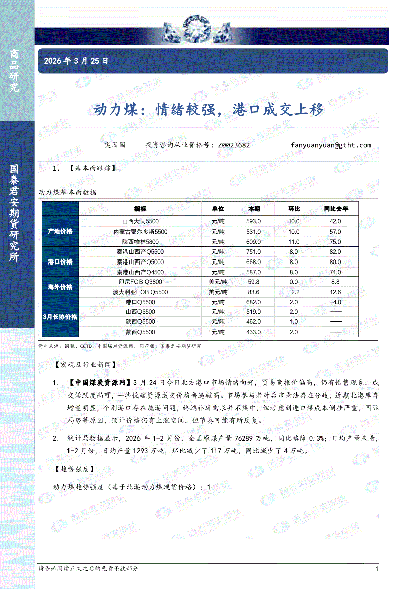 国泰君安期货-动力煤:港口走强,市场预期存分歧-260320