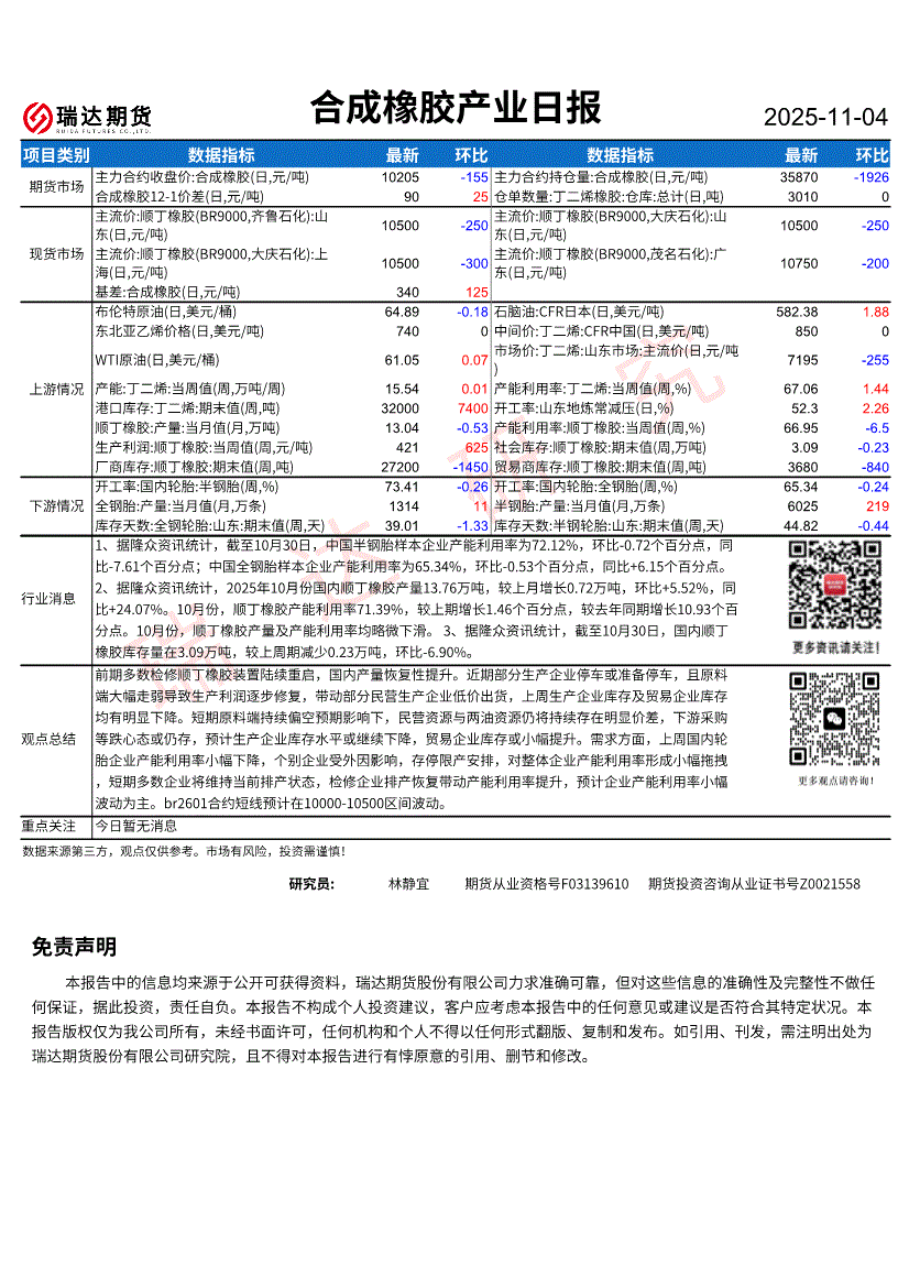 瑞达期货-合成橡胶产业日报-251104