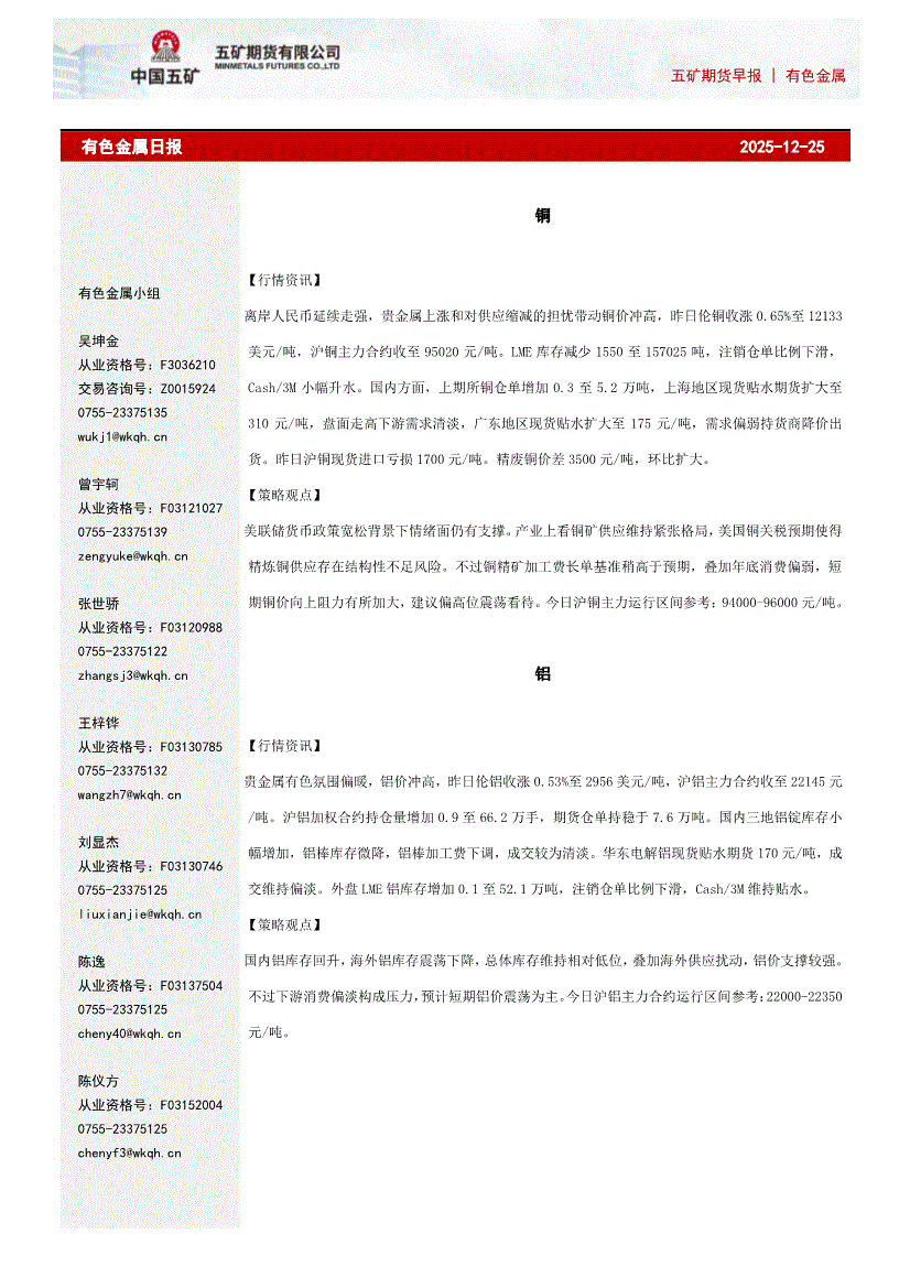 五矿期货-铝周报:情绪共振,铝价震荡走强-251227