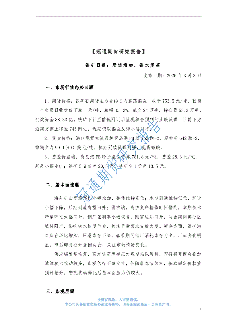 冠通期货-铁矿日报:发运增加,铁水复苏-260303