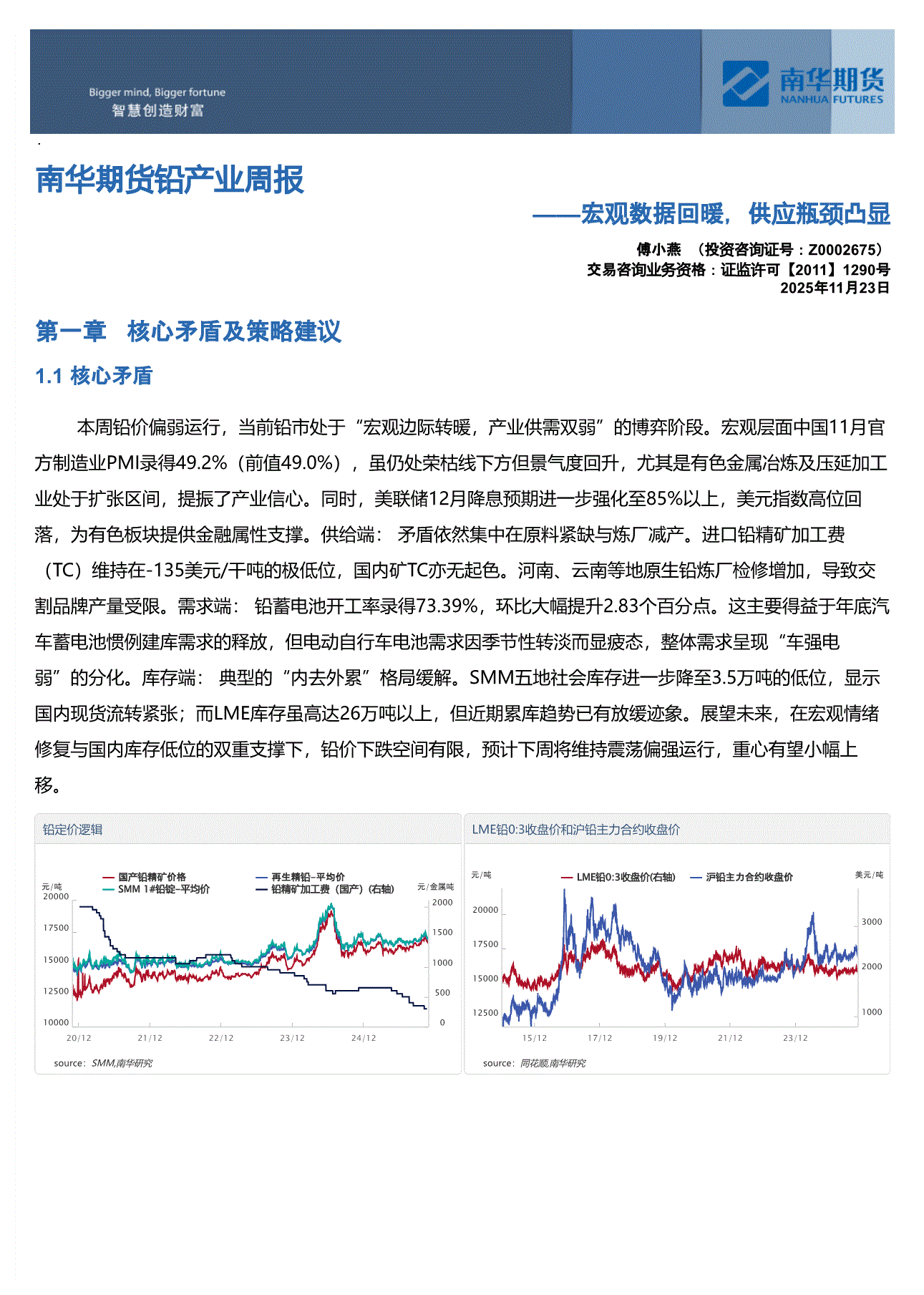 南华期货-铅产业周报:宏观数据回暖,供应瓶颈凸显-251123