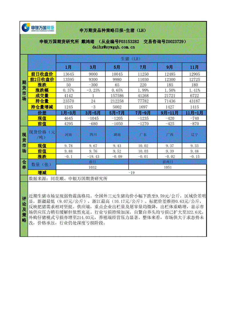 申银万国期货-品种策略日报:生猪(LH)-260319