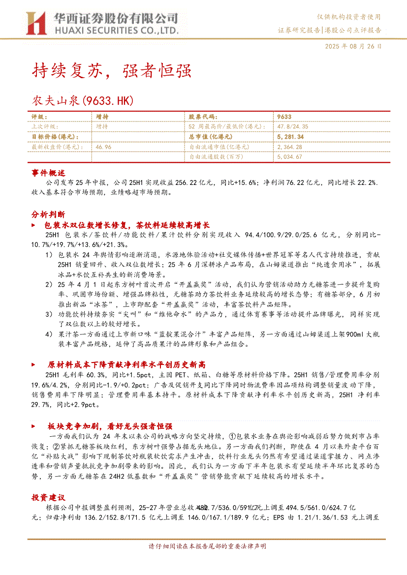 农夫山泉:华西证券-农夫山泉-9633.HK-持续复苏,强者恒强-250826
