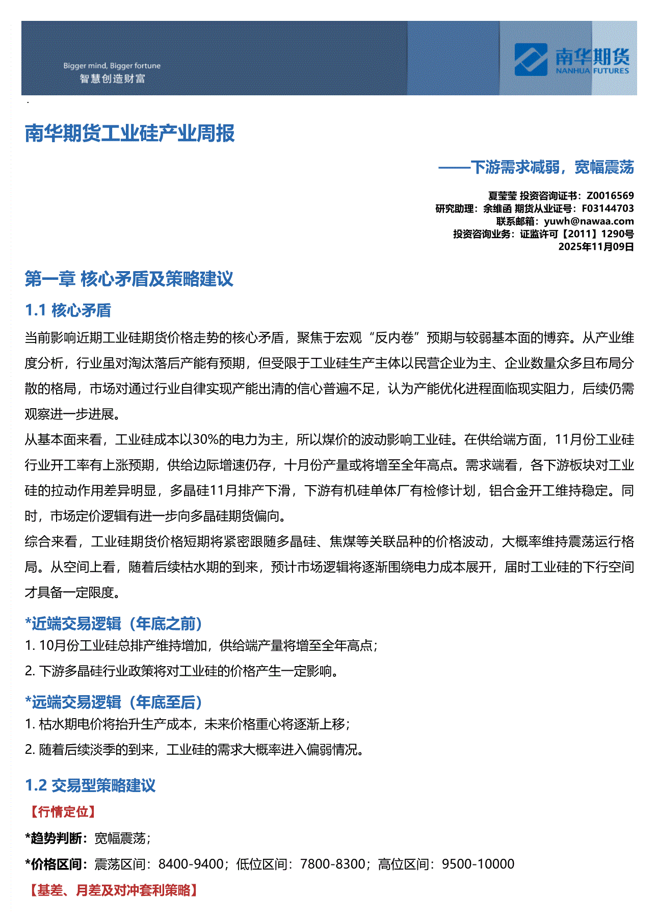 南华期货-工业硅产业周报:下游需求减弱,宽幅震荡-251109