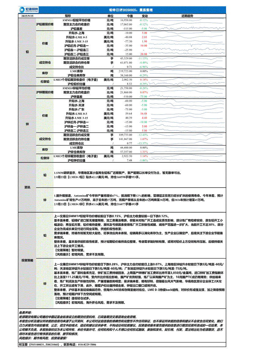 宏源期货-铅锌日评:震荡整理-250925