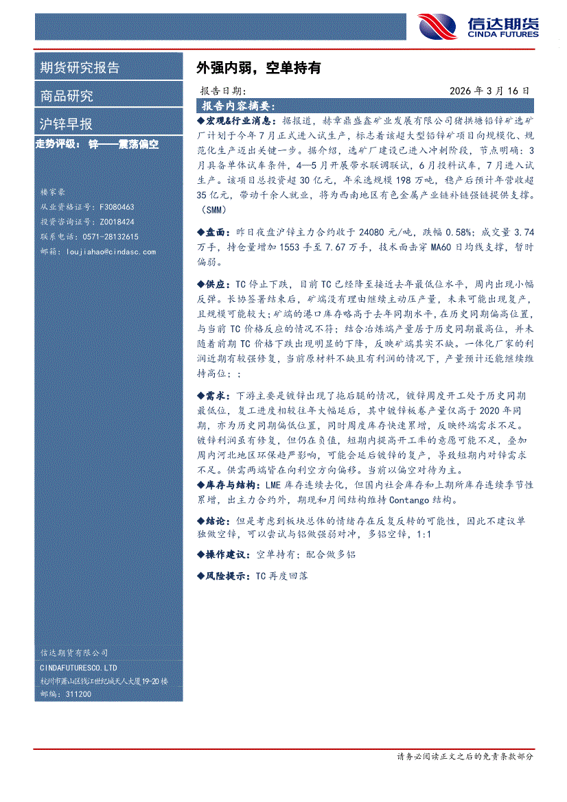 信达期货-沪锌早报:外强内弱,空单持有-260316