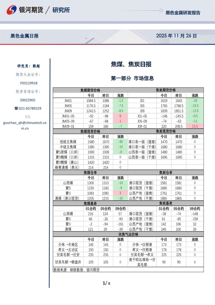 银河期货-焦煤、焦炭日报-251126