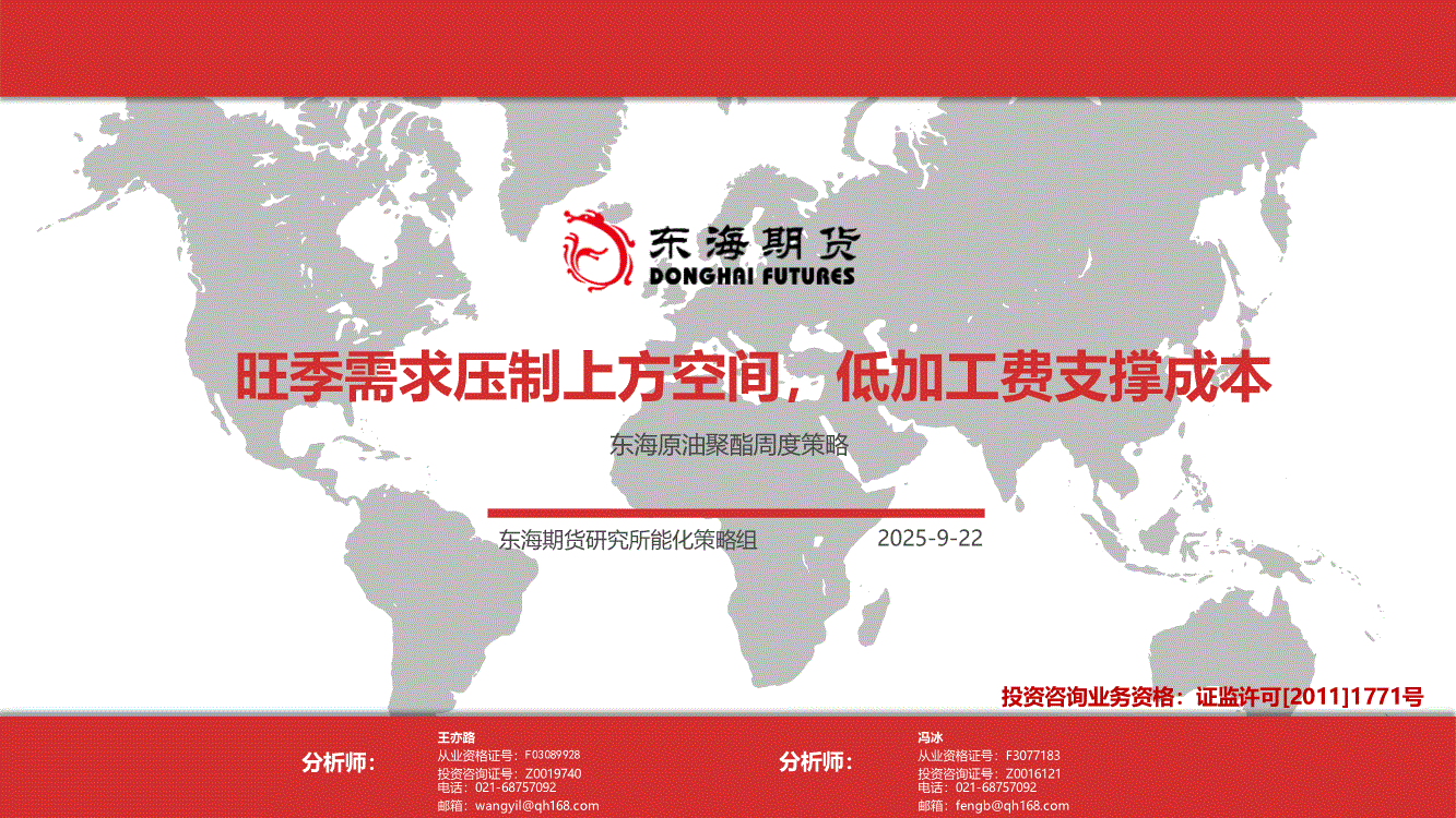 东海期货-原油聚酯周度策略:旺季需求压制上方空间,低加工费支撑成本-250922