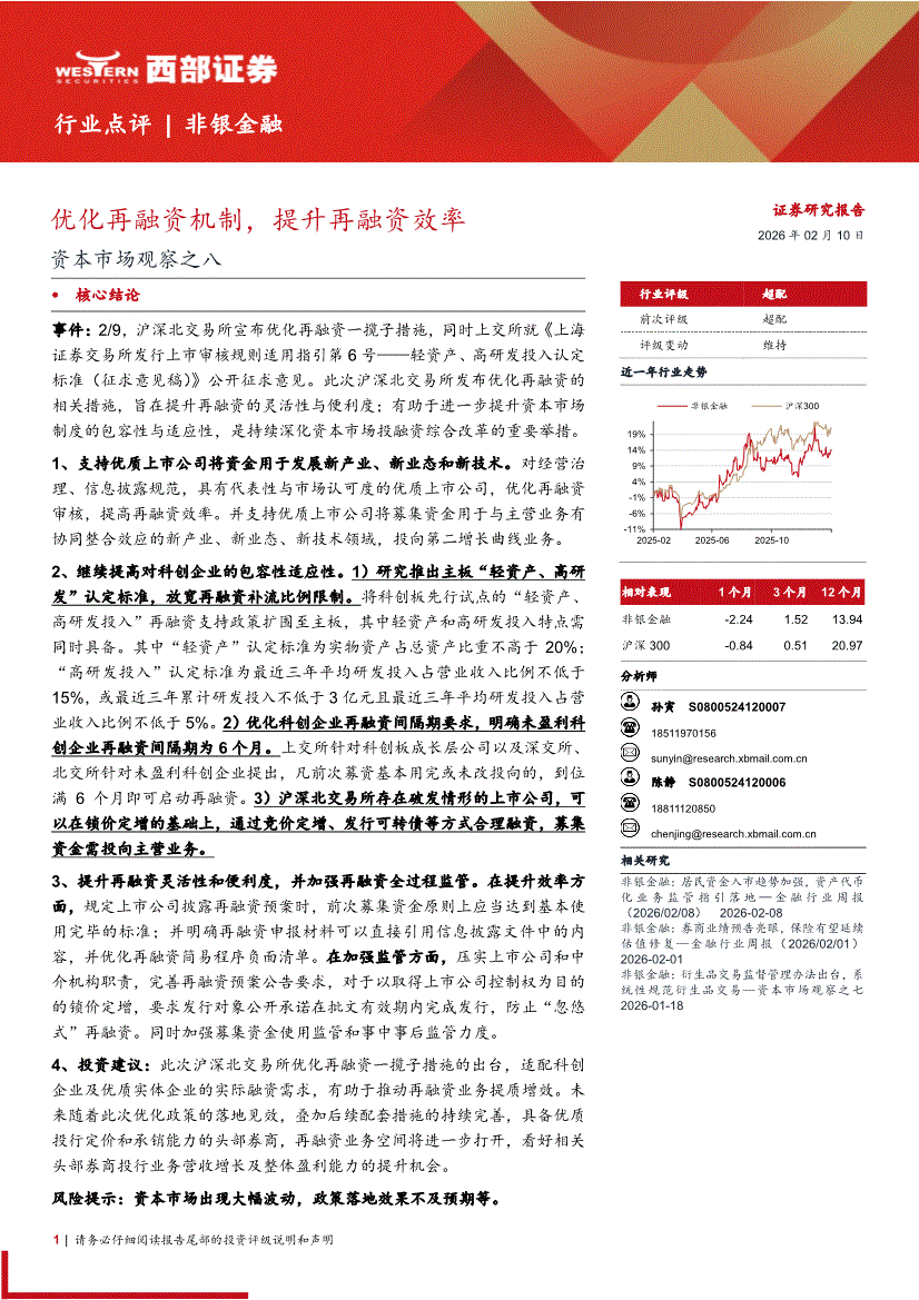 非银金融行业:西部证券-非银金融行业资本市场观察之八:优化再融资机制,提升再融资效率-260210