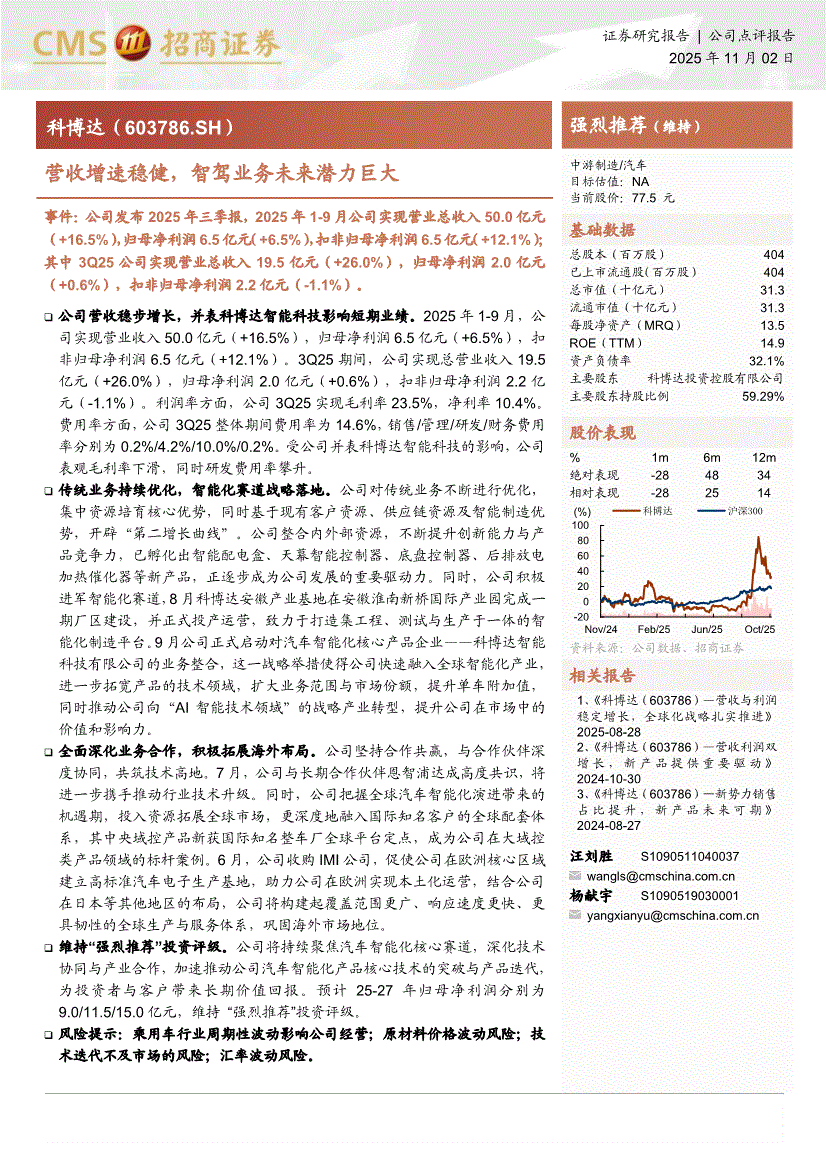 科博达:招商证券-科博达-603786-营收增速稳健,智驾业务未来潜力巨大-251102