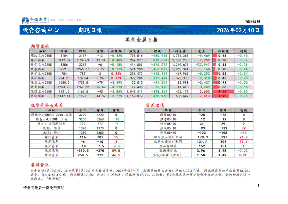 宁证期货-期现日报-260310