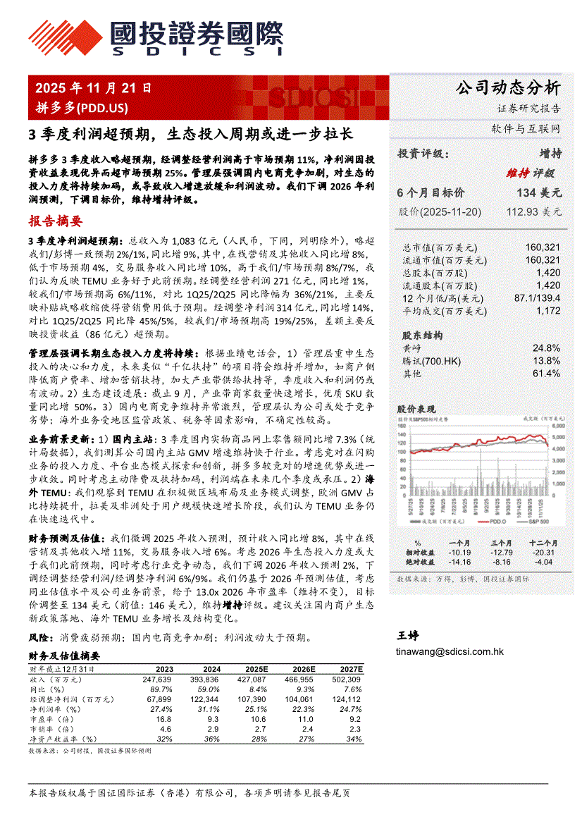 拼多多:国证国际-拼多多-PDD.US-3季度利润超预期,生态投入周期或进一步拉长-251121