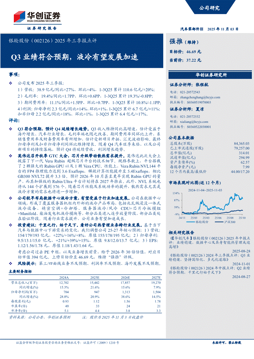 银轮股份:华创证券-银轮股份-002126-2025年三季报点评:Q3业绩符合预期,液冷有望发展加速-251103