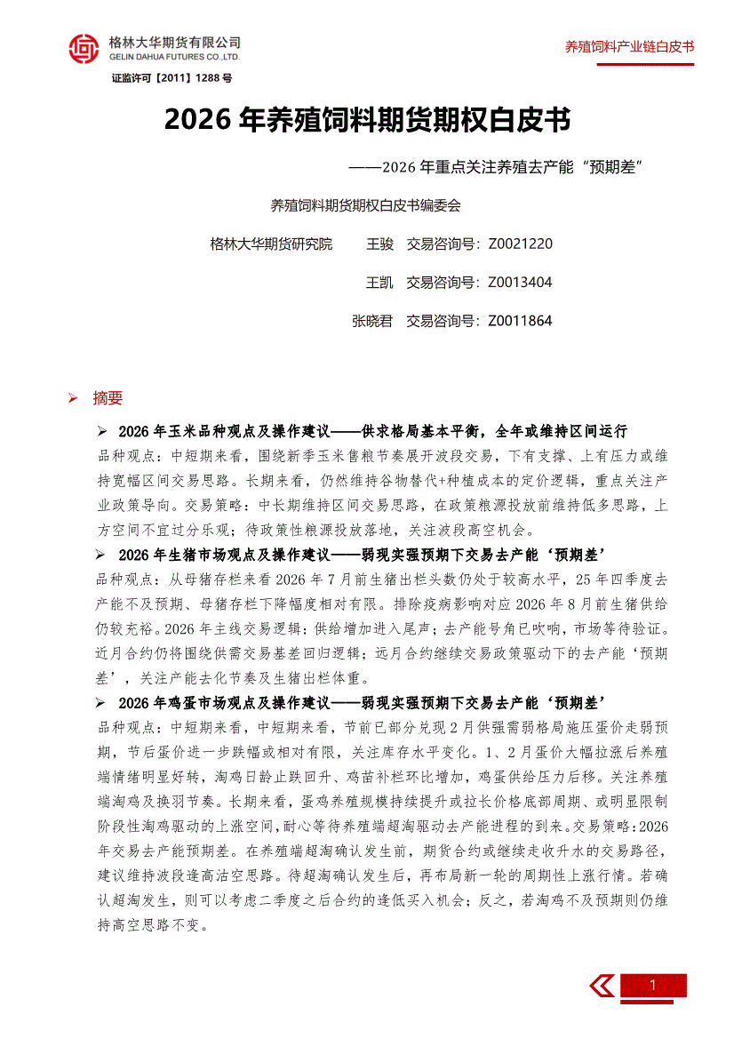 格林大华期货-2026年养殖饲料期货期权白皮书:2026年重点关注养殖去产能“预期差”-260306