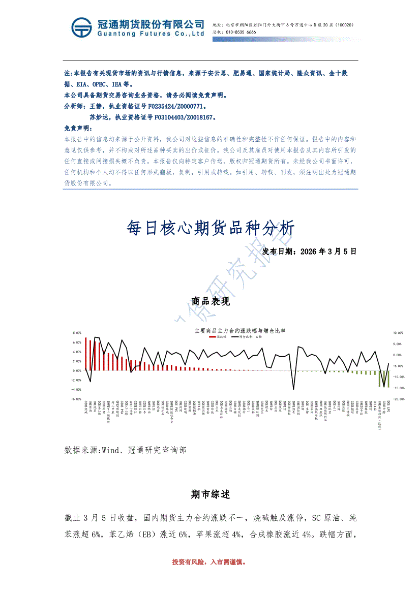 冠通期货-每日核心期货品种分析-260305