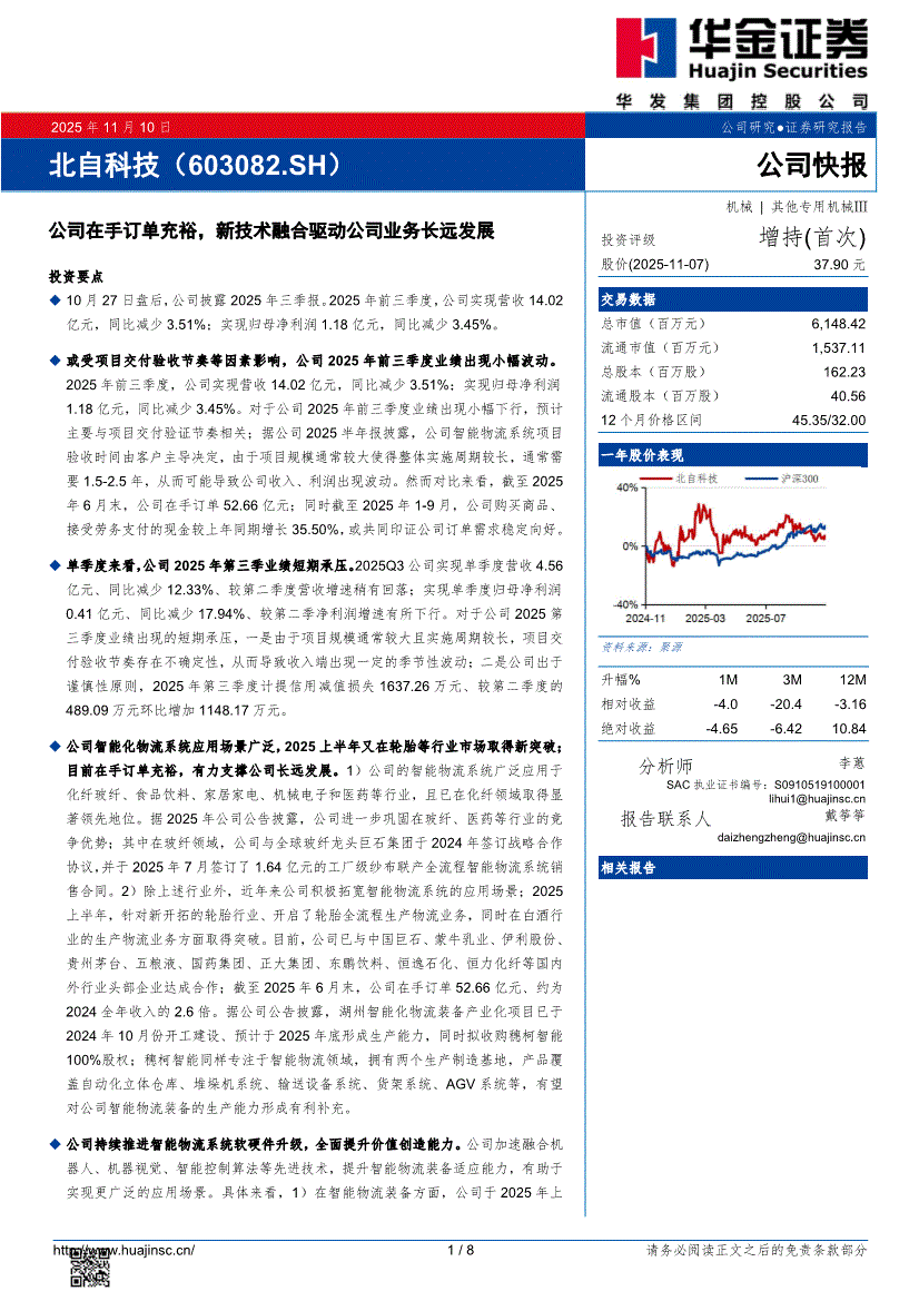 北自科技:华金证券-北自科技-603082-公司在手订单充裕,新技术融合驱动公司业务长远发展-251110