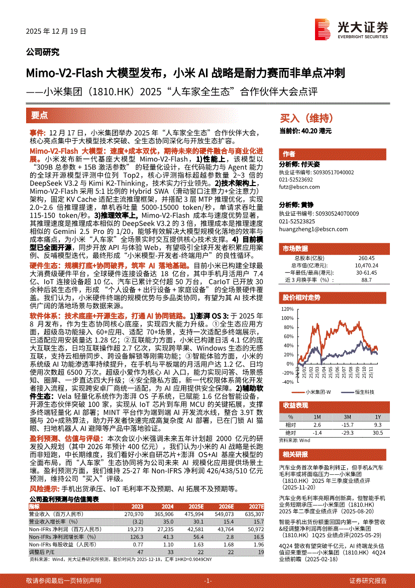 小米集团:光大证券-小米集团-1810.HK-2025“人车家全生态”合作伙伴大会点评:Mimo~V2~Flash大模型发布,小米AI战略是耐力赛而非单点冲刺-251219