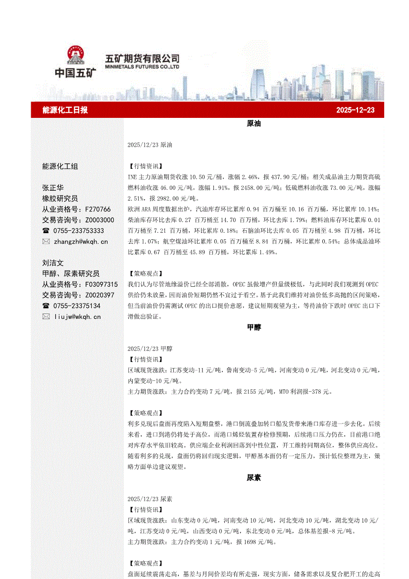 五矿期货-甲醇专题报告:01之前仍存压力-251210
