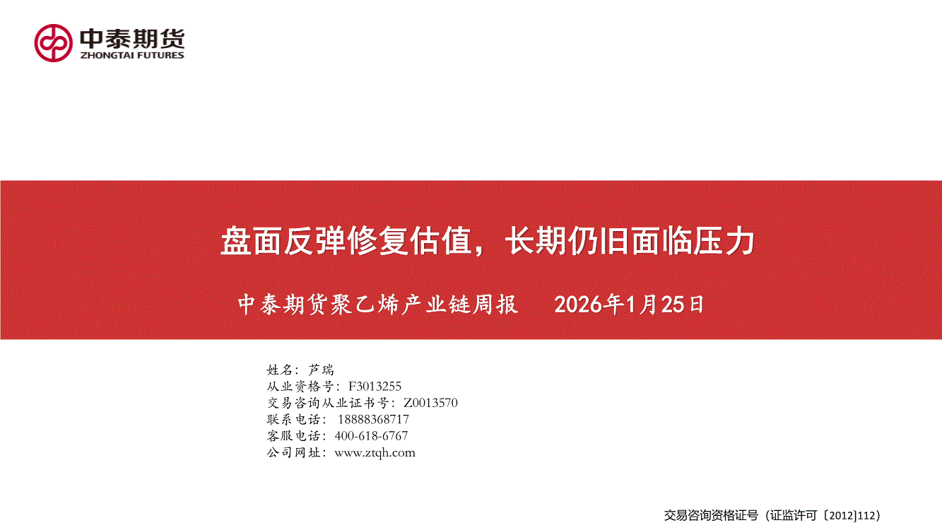 中泰期货-聚乙烯产业链周报:盘面反弹修复估值,长期仍旧面临压力-260125