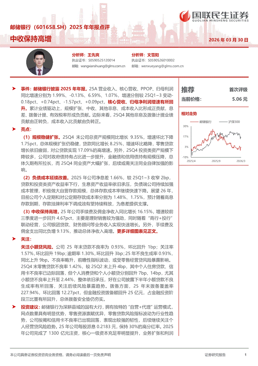 邮储银行:国联民生证券-邮储银行-601658-2025年年报点评:中收保持高增-260330