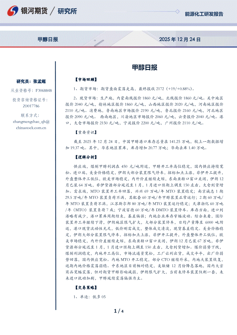 银河期货-甲醇日报-251224