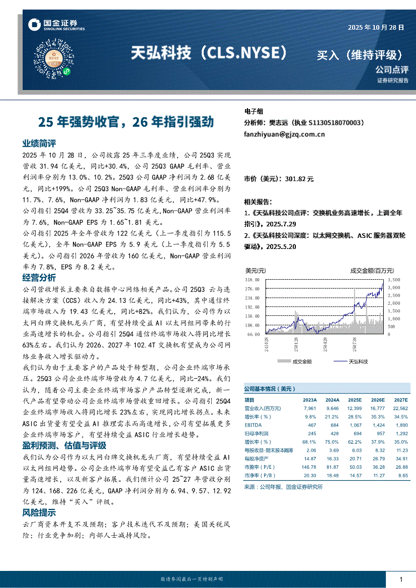 天弘科技:国金证券-天弘科技-CLS.US-25年强势收官,26年指引强劲-251028