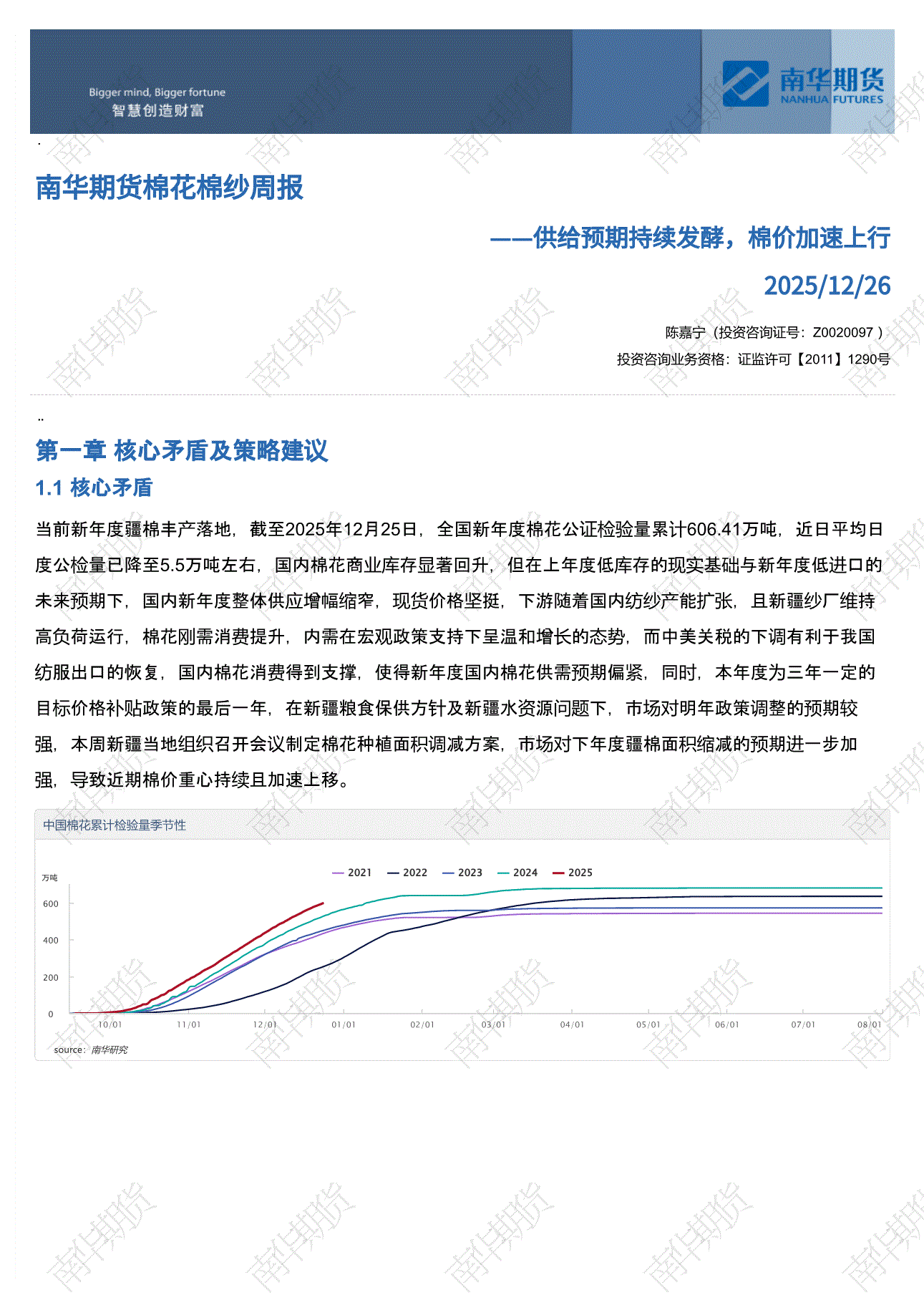 南华期货-棉花棉纱周报:供给预期持续发酵,棉价加速上行-251226