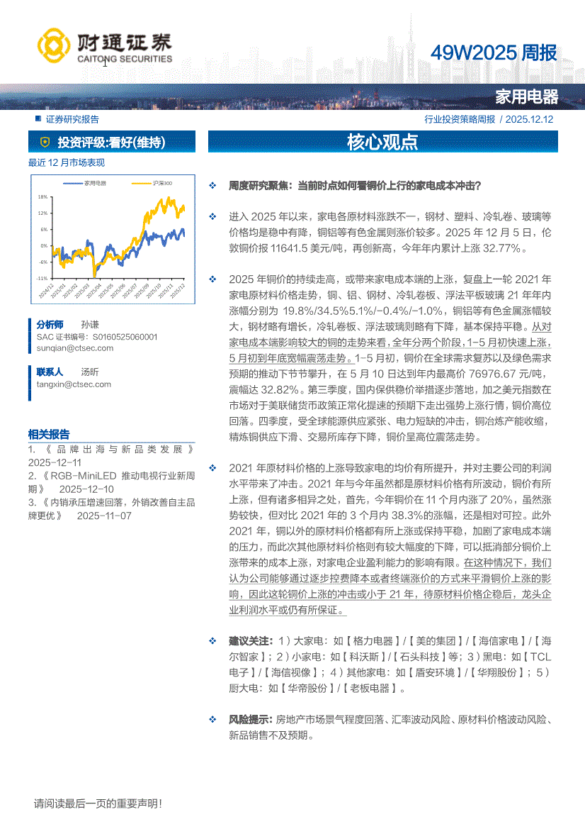 家用电器行业:财通证券-家用电器行业49W2025周报-251212