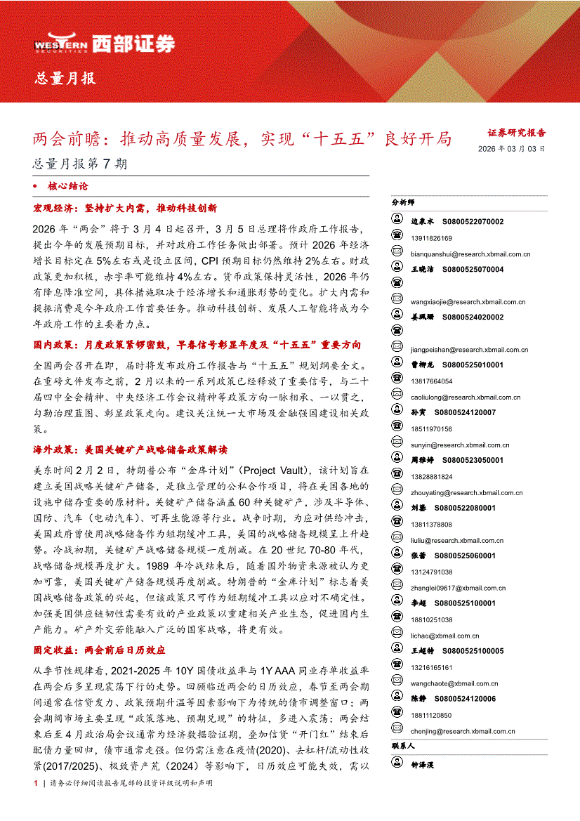 西部证券-总量月报第7期:两会前瞻,推动高质量发展,实现“十五五”良好开局-260303