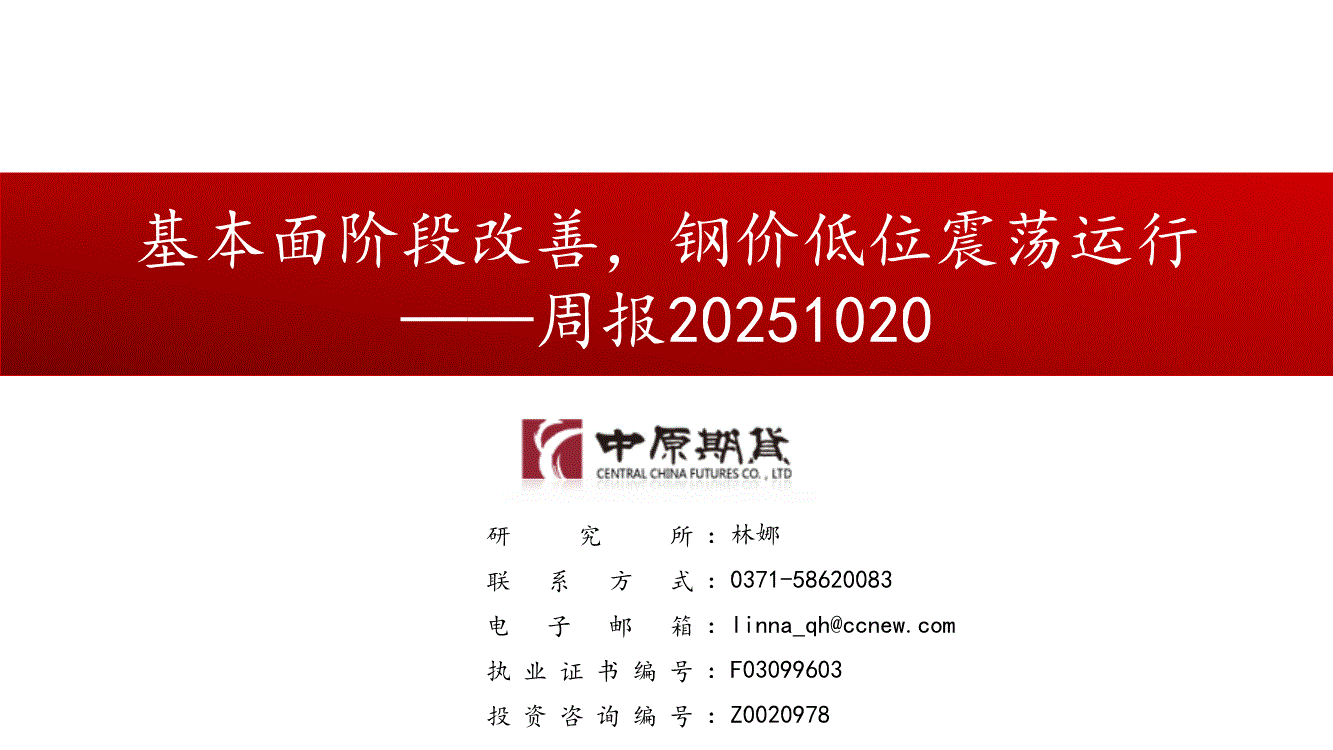 中原期货-周报:基本面阶段改善,钢价低位震荡运行-251020