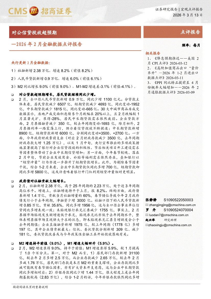 招商证券-2026年2月金融数据点评报告:对公信贷投放超预期-260313